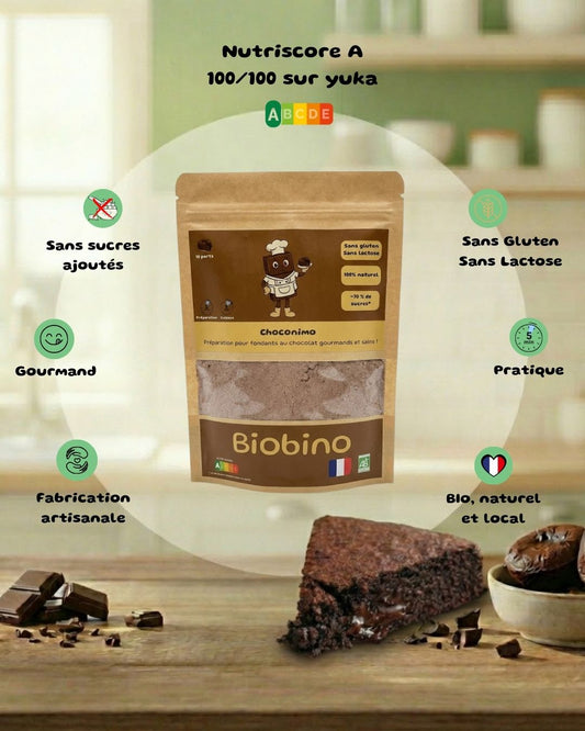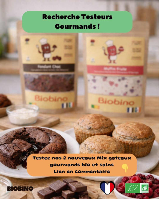Chez Biobino, nous réinventons la préparation pour cookie avec des recettes bio, saines et naturelles, à base de poudre de fruit et de fibres végétales. Nos mix donnent des cookies moelleux et gourmands, sans sucres ajoutés, sans gluten ni lactose. Fabriqués en France avec des ingrédients simples et des emballages recyclables, ils permettent de préparer en quelques minutes un goûter maison bon pour les enfants et pour la planète.